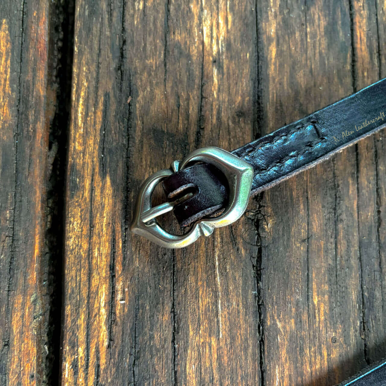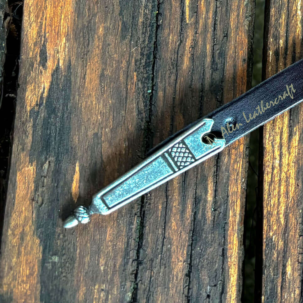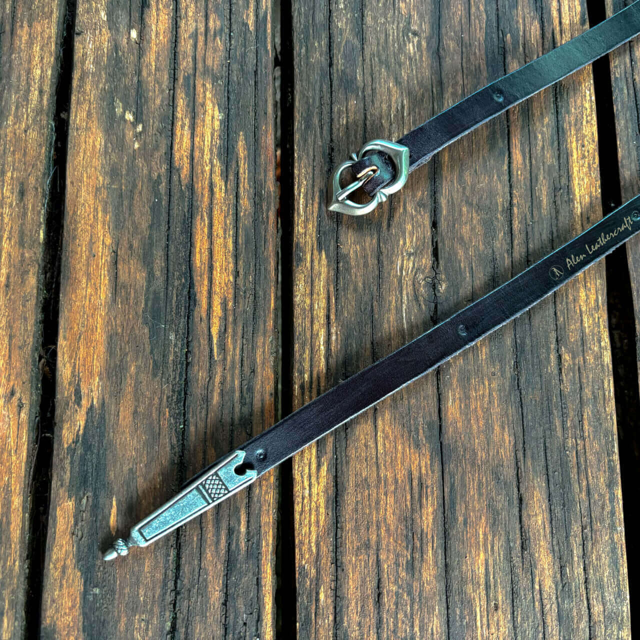 Ta ročno izdelan usnjeni pas je izdelan iz visokokakovostnega vegetabilnega usnja, ki zagotavlja trpežnost in dolgotrajno uporabo. Zaponka in pasni zaključek sta navdihnjena po najdbi iz Anglije iz 14.-15. stol.