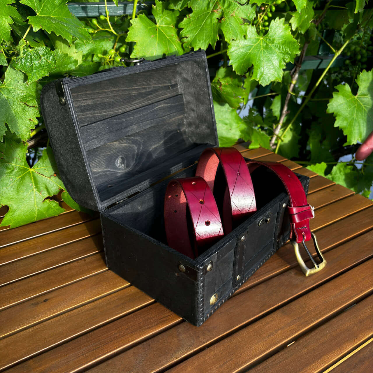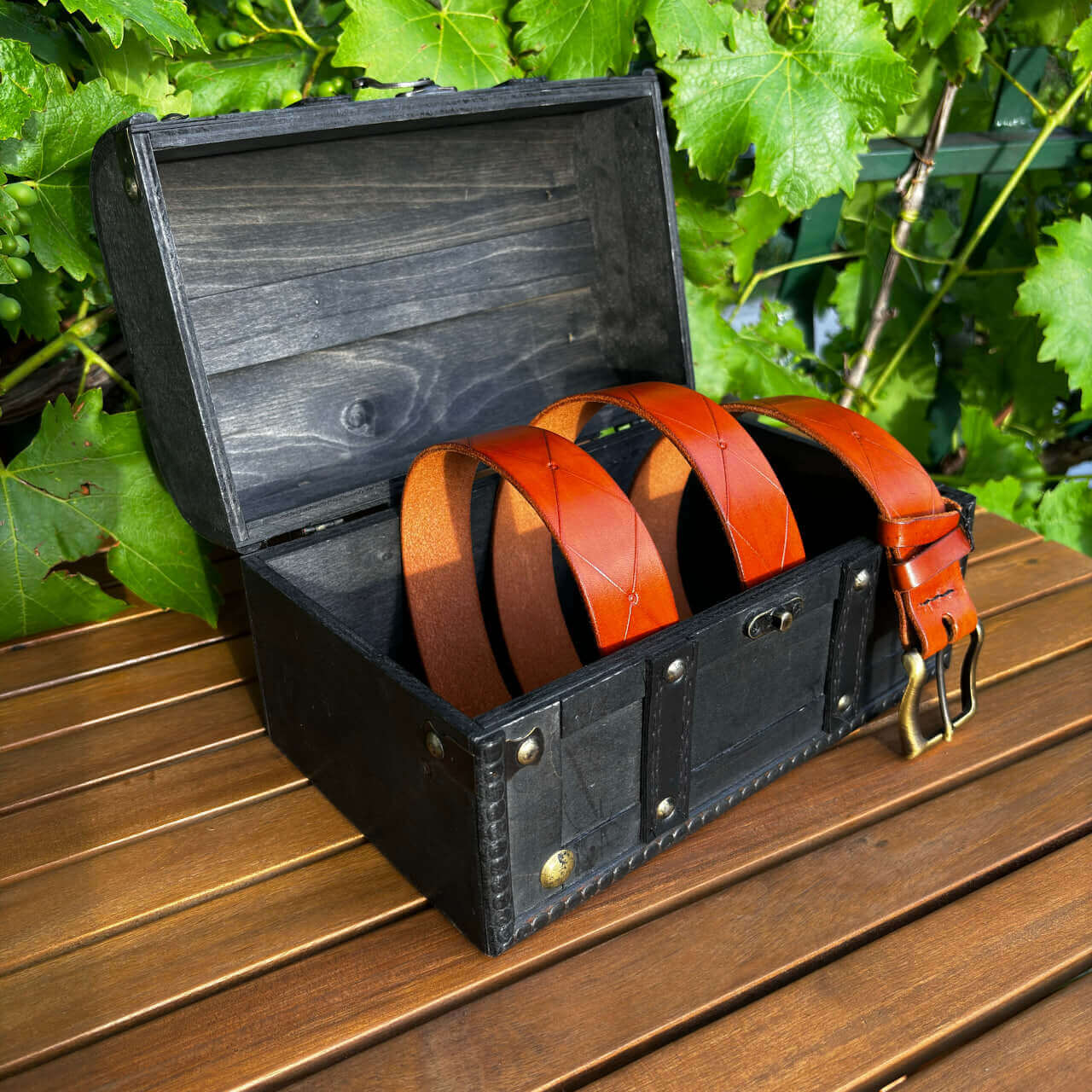 Ta ročno izdelan usnjeni pas karo združuje tradicijo in naravno estetiko v edinstven modni dodatek. Izdelan je iz visokokakovostnega vegetabilnega usnja, ki zagotavlja trpežnost in dolgotrajno uporabo. Površina pasu je obdelana z vzorcem, ki posnema videz lesa, kar mu daje poseben in naraven videz.