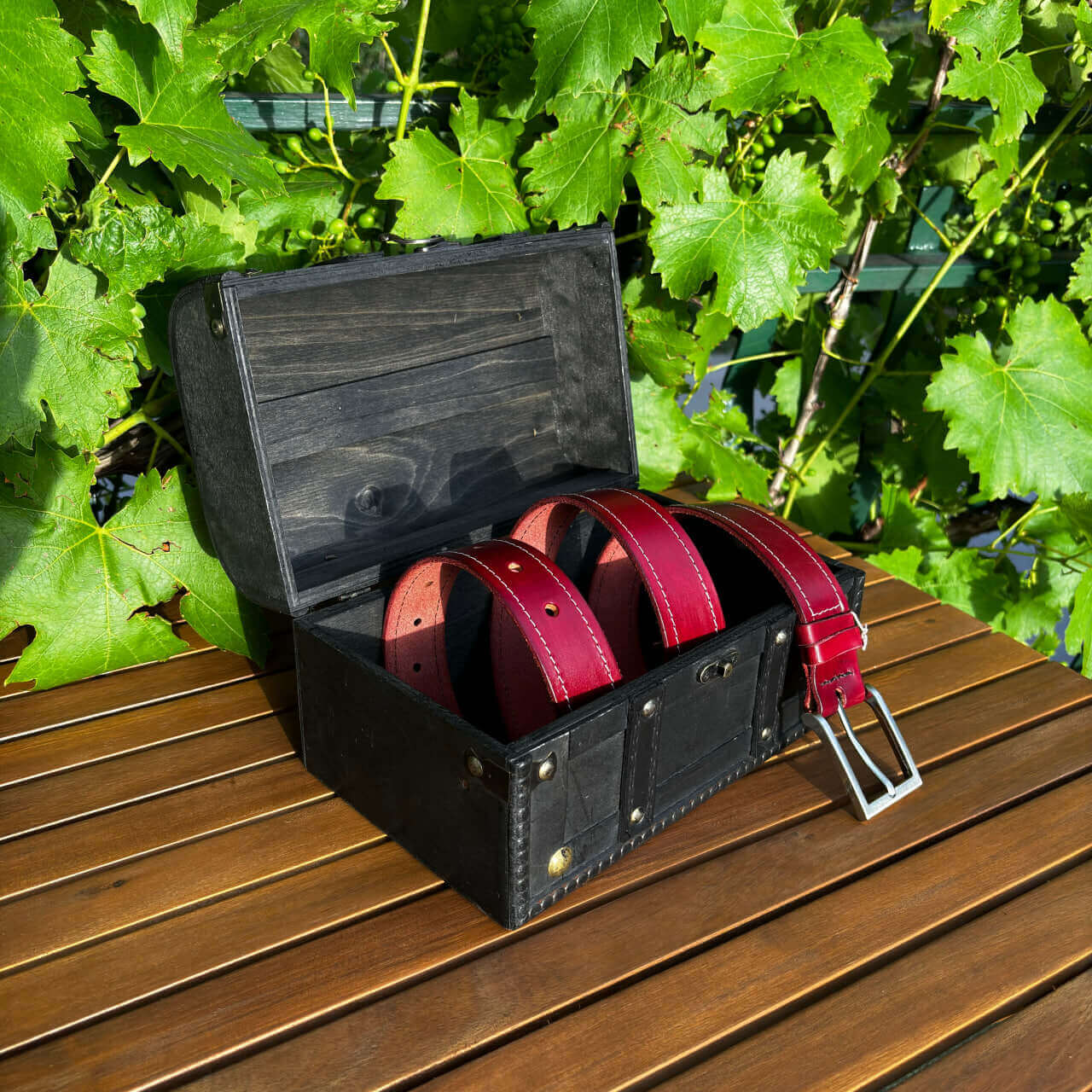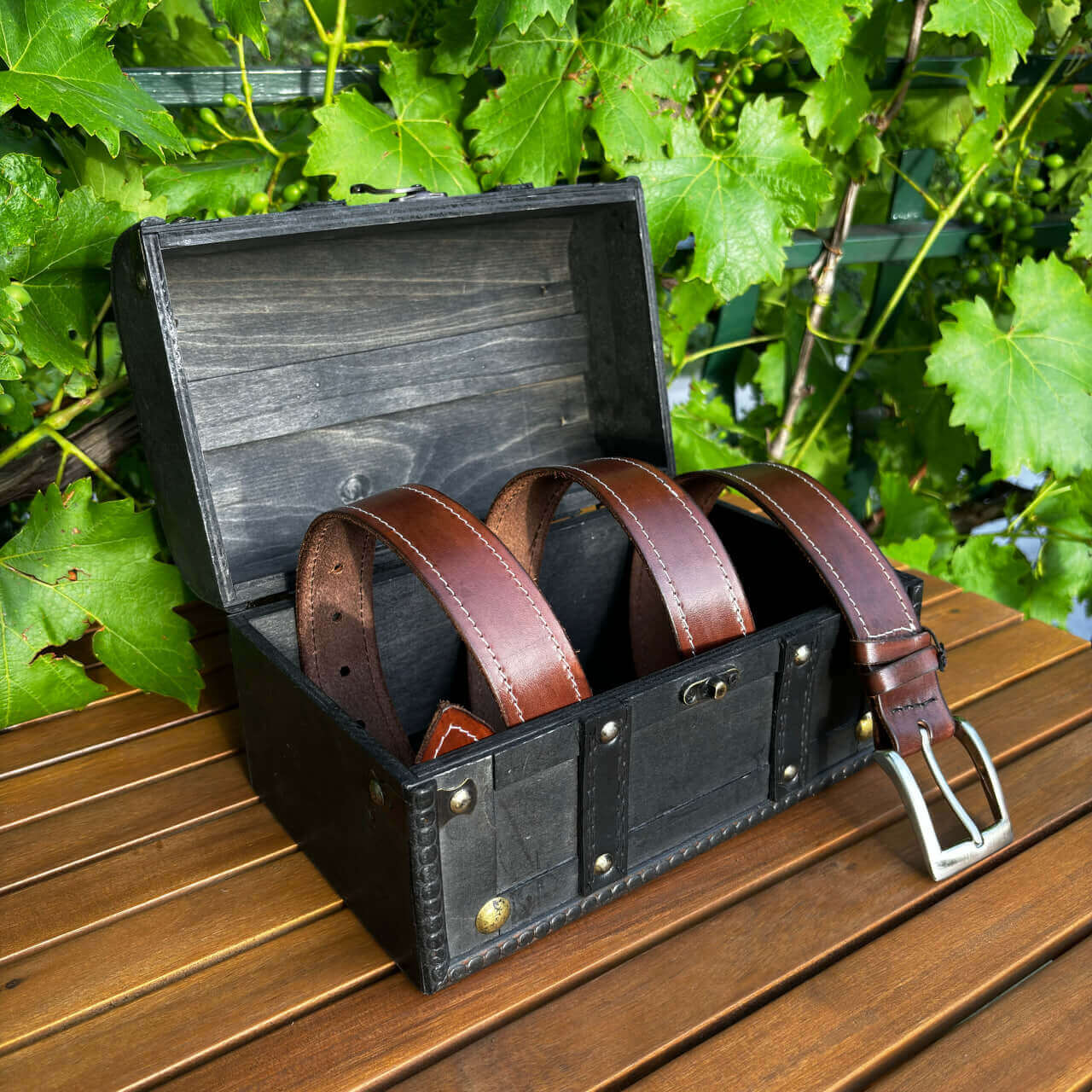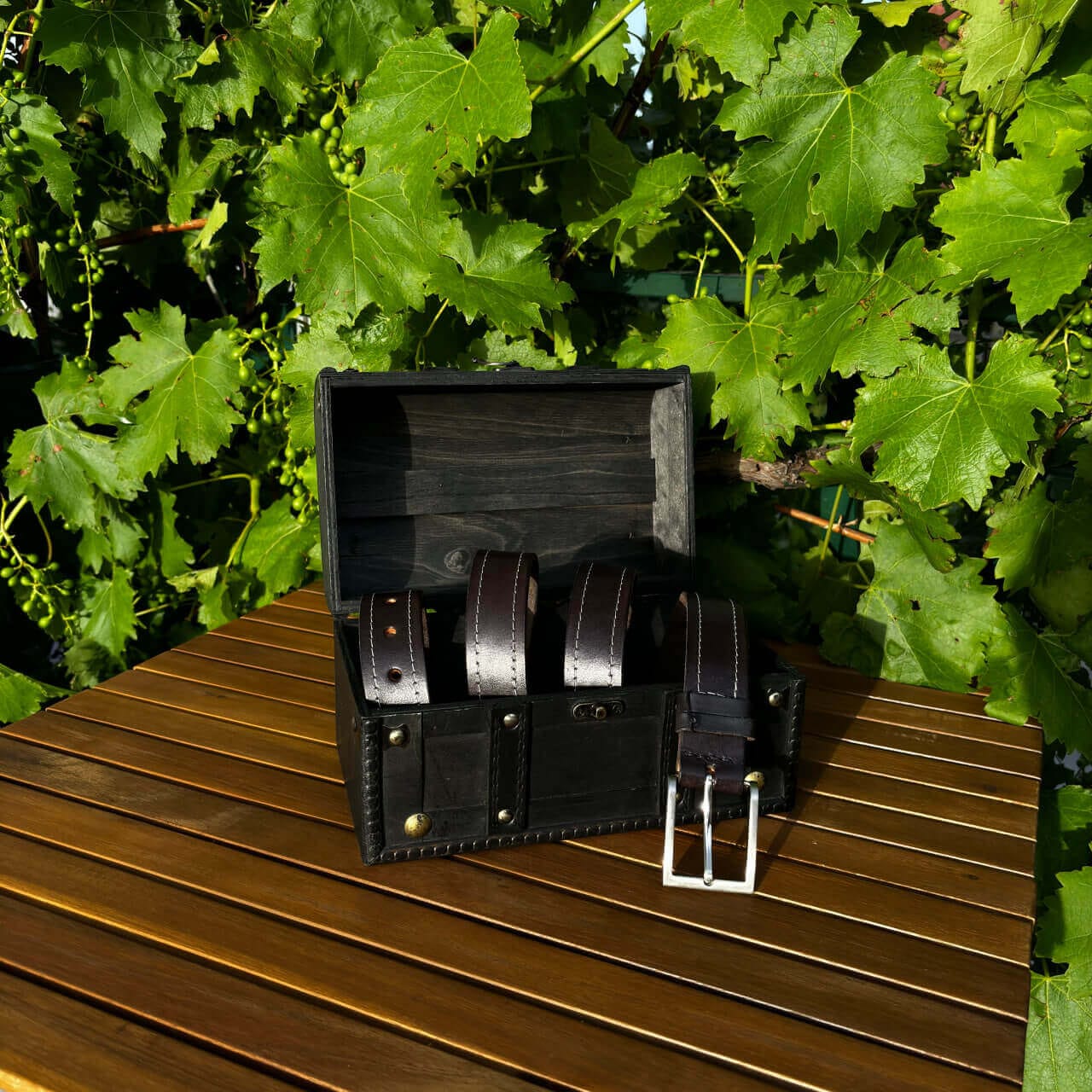 Ta ročno izdelan usnjeni pas s šivom združuje klasično estetiko z rastlinsko motiviko in konji v edinstven modni dodatek. Izdelan je iz visokokakovostnega vegetabilnega usnja, ki zagotavlja trpežnost in dolgotrajno uporabo. Površina pasu je obdelana z vzorcem, ki posnema videz lesa, kar mu daje poseben in naraven videz.