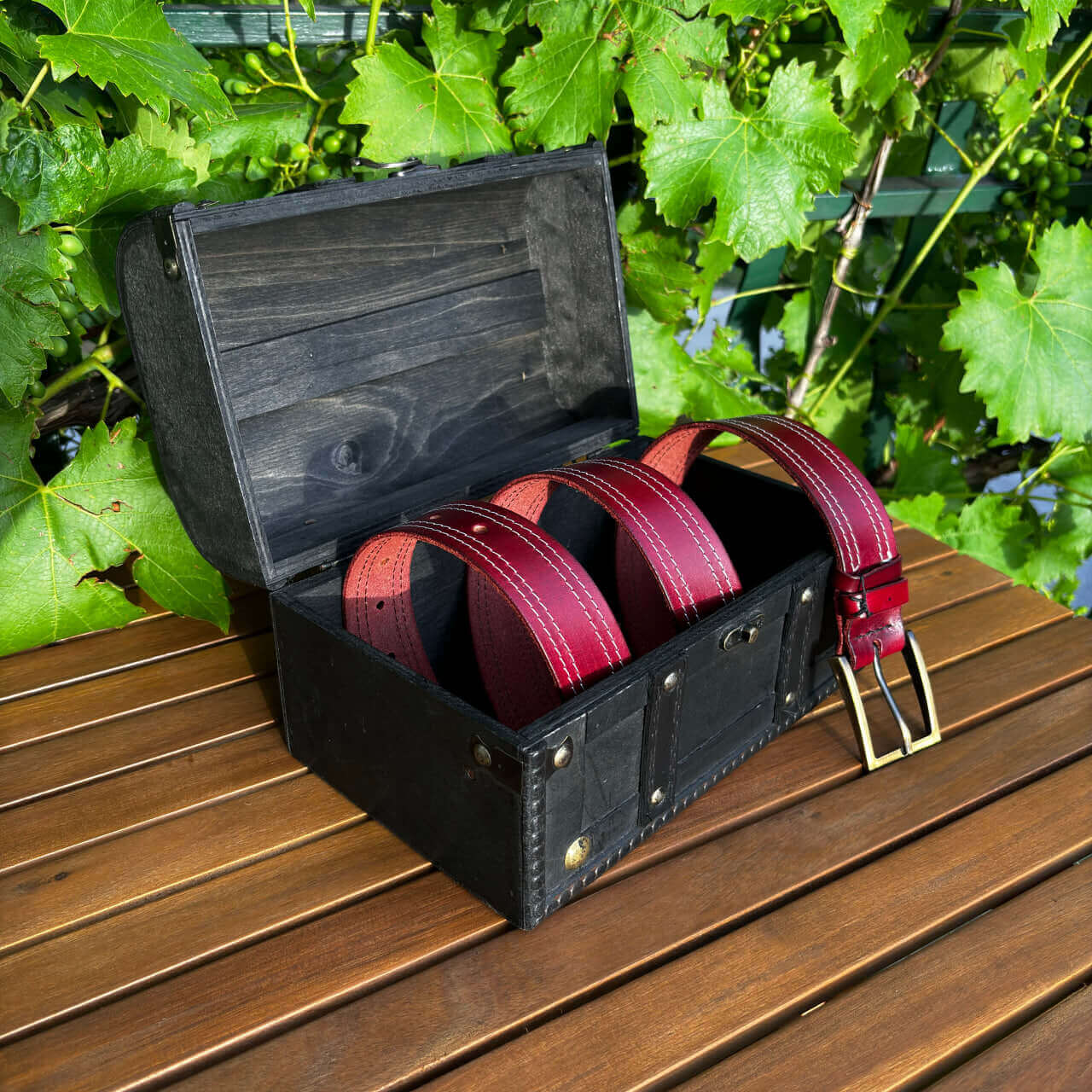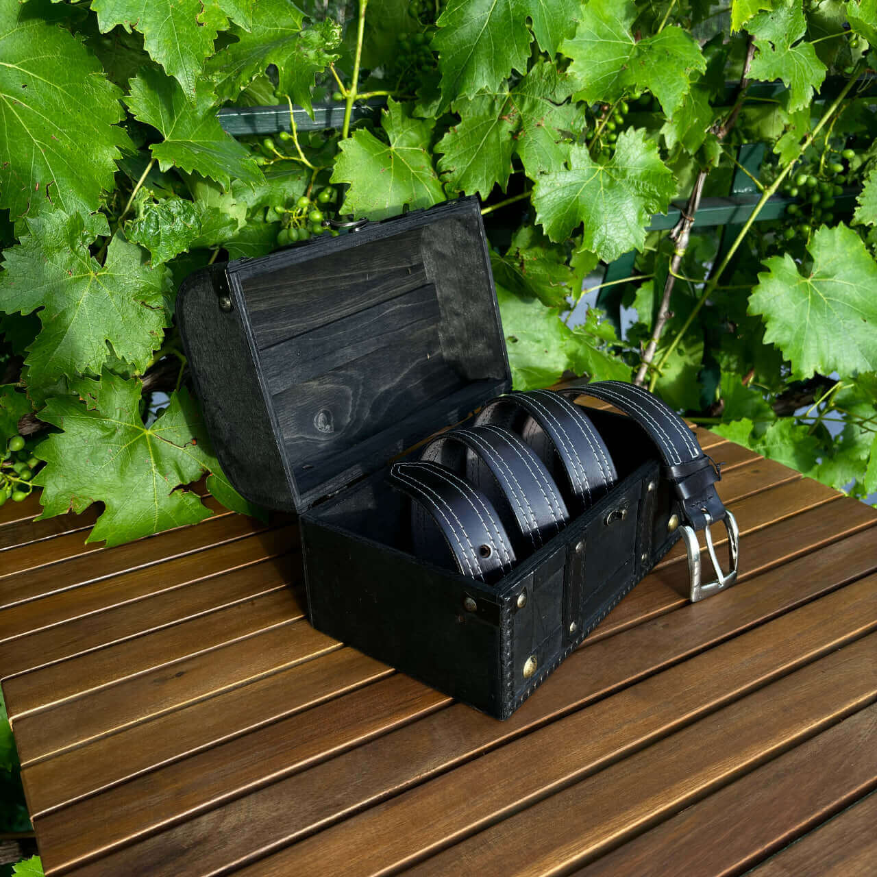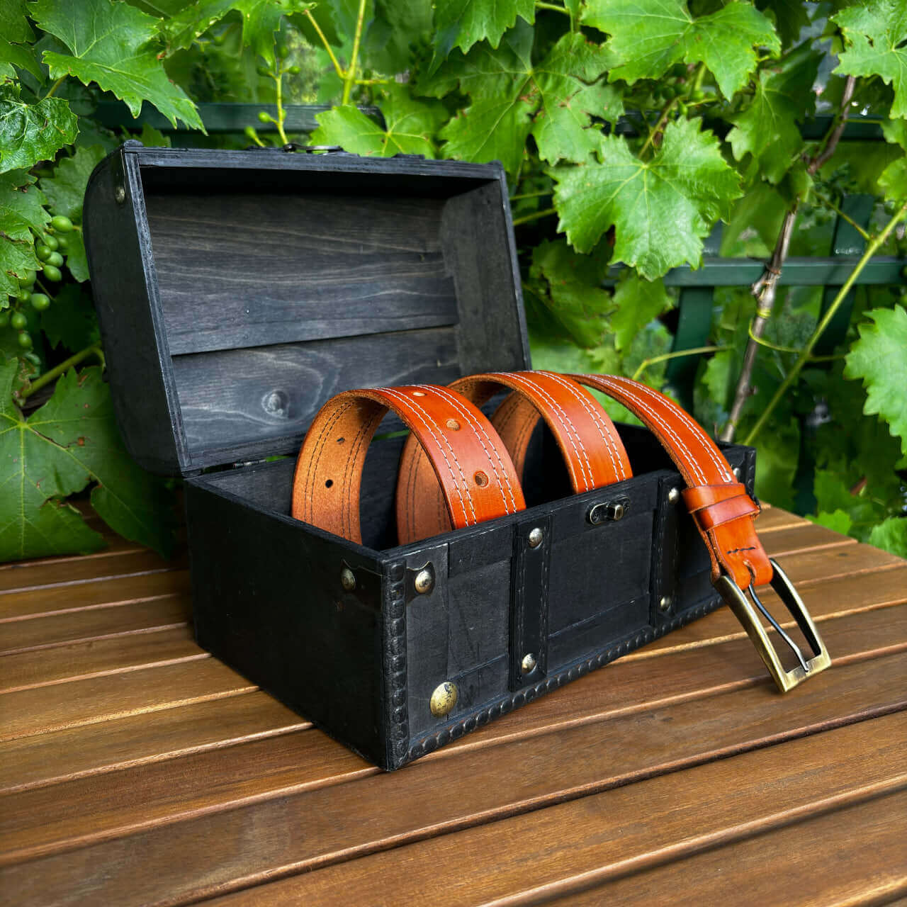 Ta ročno izdelan usnjeni pas s šivoma združuje klasično estetiko z rastlinsko motiviko in konji v edinstven modni dodatek. Izdelan je iz visokokakovostnega vegetabilnega usnja, ki zagotavlja trpežnost in dolgotrajno uporabo. Površina pasu je obdelana z vzorcem, ki posnema videz lesa, kar mu daje poseben in naraven videz.