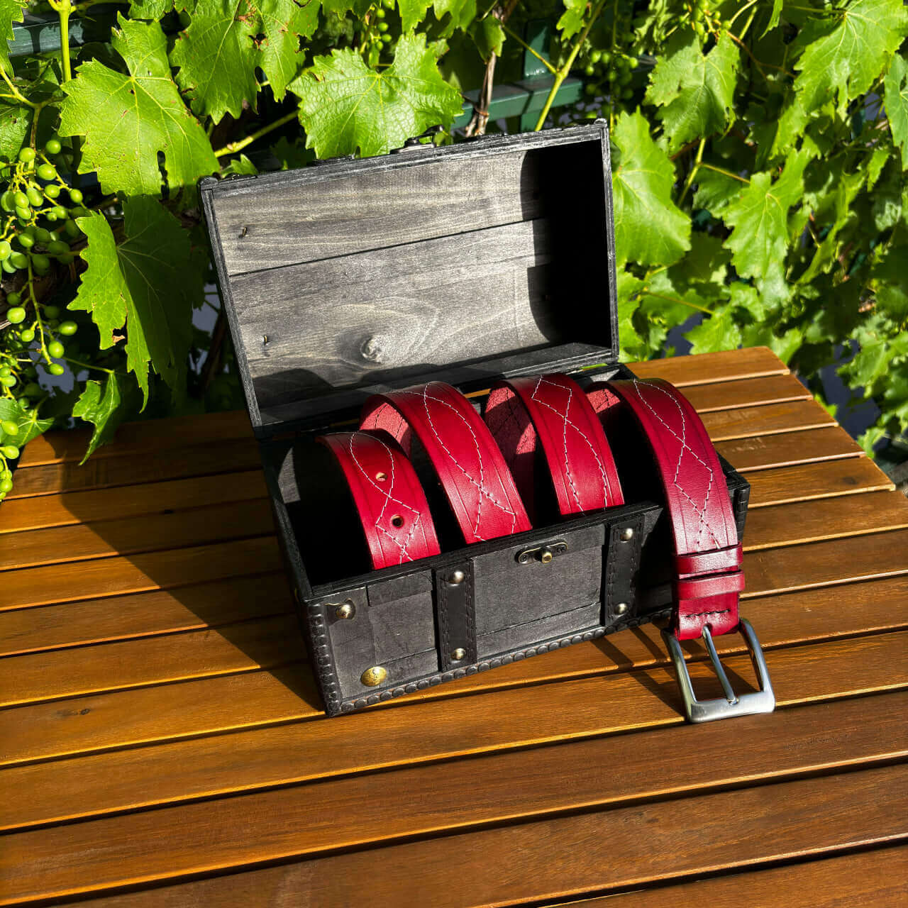 Vsak detajl na pasu je skrbno izdelan, od natančnega rezanja do ročnega šivanja in barvanja. Motiv ustvarja vizualno privlačnost, ki je primerna tako za vsakodnevno uporabo kot za posebne priložnosti. Pas je na voljo v različnih velikostih in barvah, kar omogoča popolno prileganje vsakemu uporabniku.