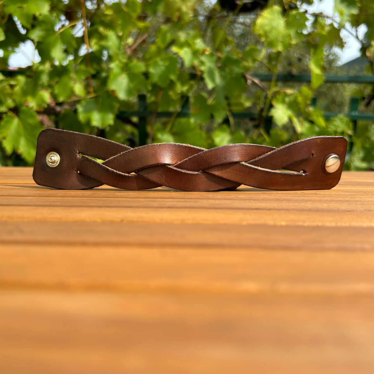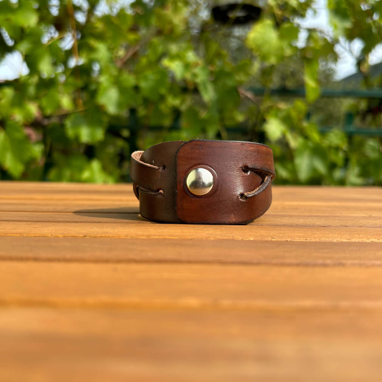 Zapestnica je izdelana iz prvovrstnega pravega usnja, ki zagotavlja trpežnost in udobje. Usnje s časom pridobi svojo edinstveno patino, kar prispeva k njenemu čaru in unikatnosti. Mehka, a robustna tekstura se lepo prilagodi vašemu zapestju in omogoča prijetno nošenje skozi ves dan.