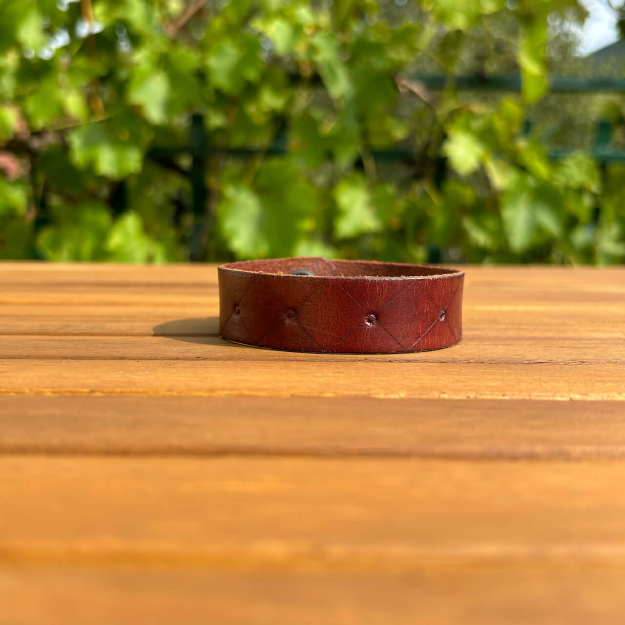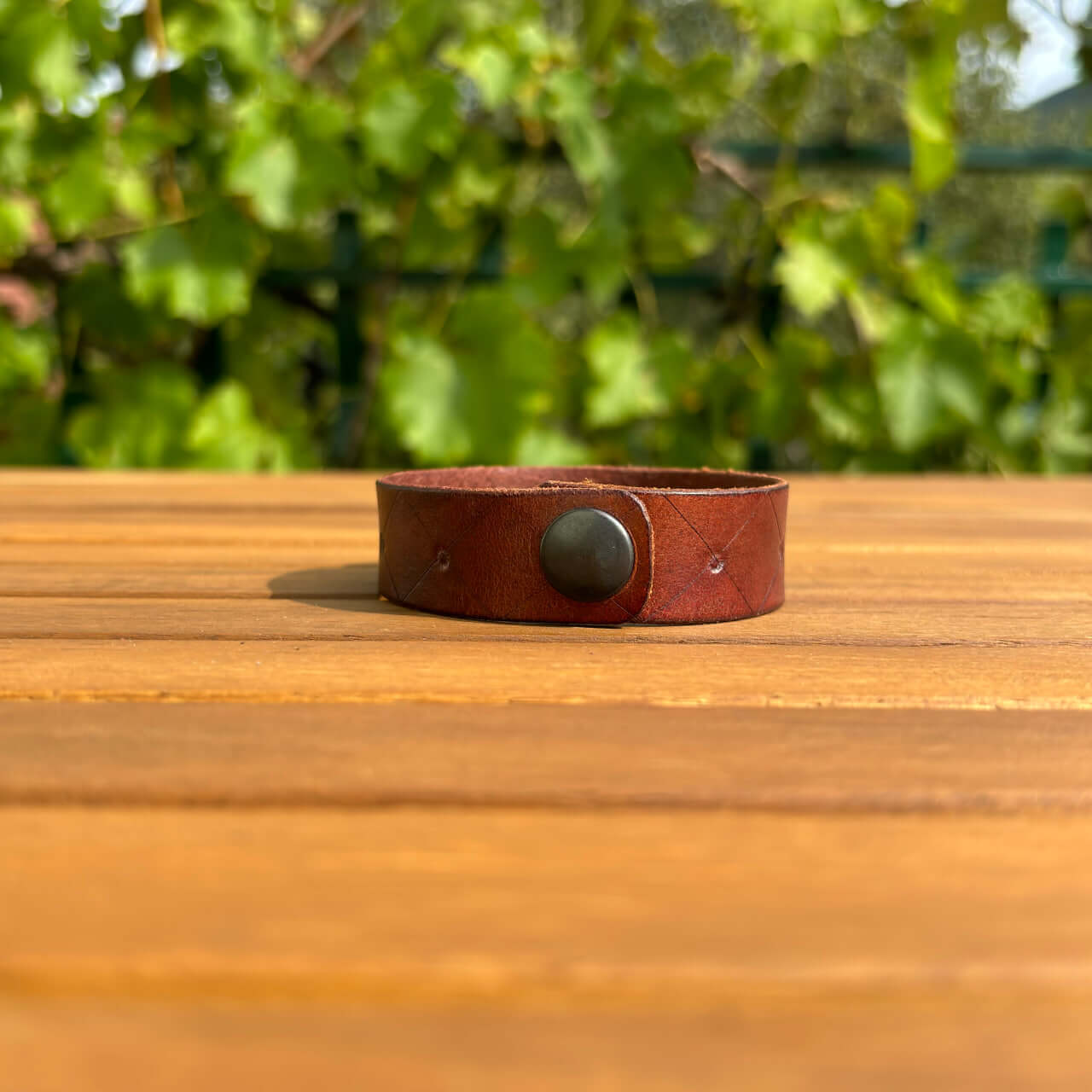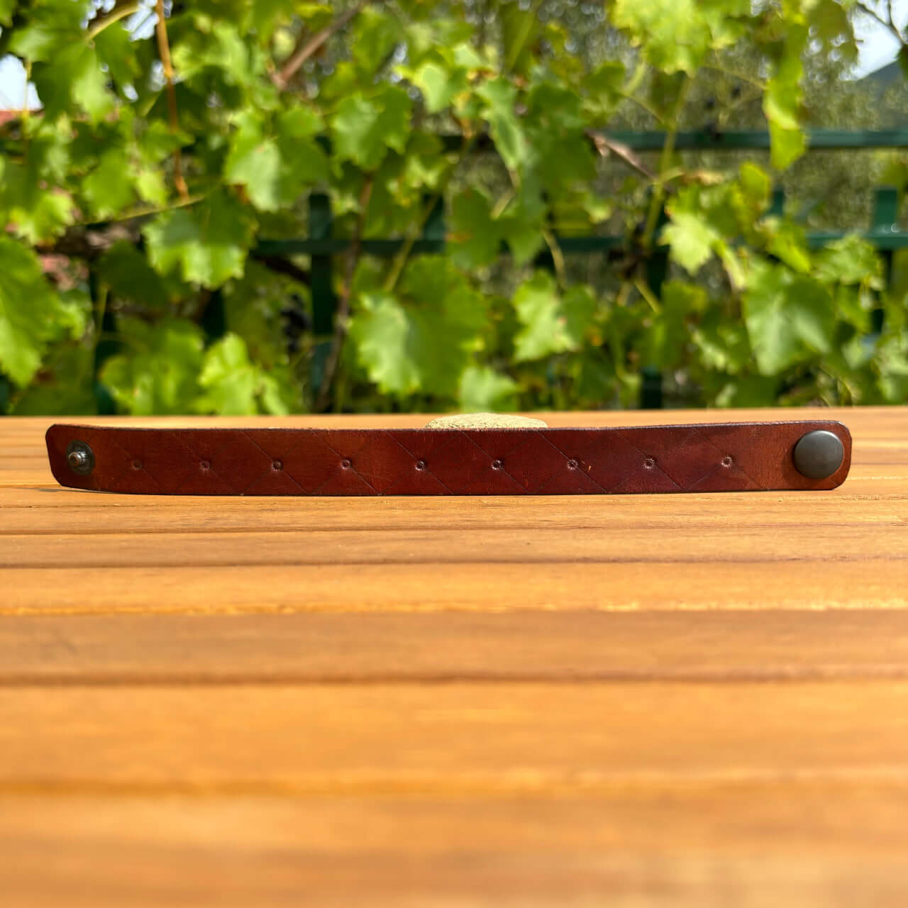 Zapestnica je izdelana iz prvovrstnega pravega usnja, ki zagotavlja trpežnost in udobje. Usnje s časom pridobi svojo edinstveno patino, kar prispeva k njenemu čaru in unikatnosti. Mehka, a robustna tekstura se lepo prilagodi vašemu zapestju in omogoča prijetno nošenje skozi ves dan.