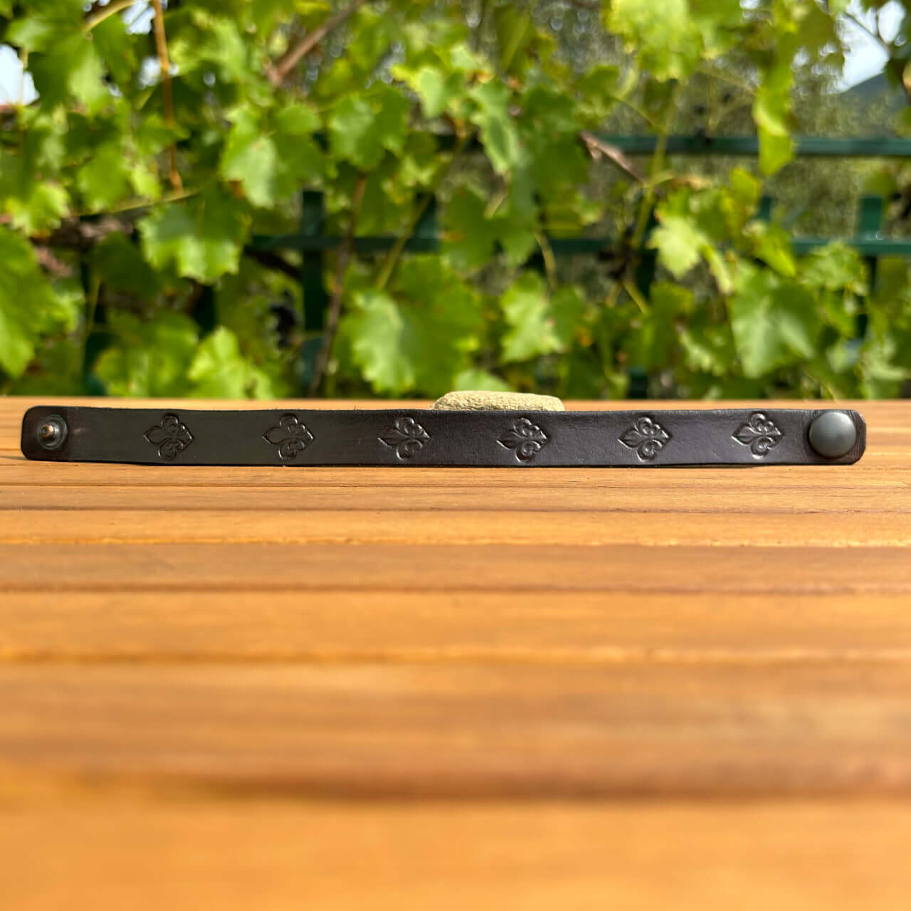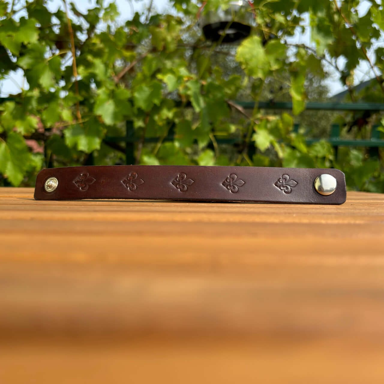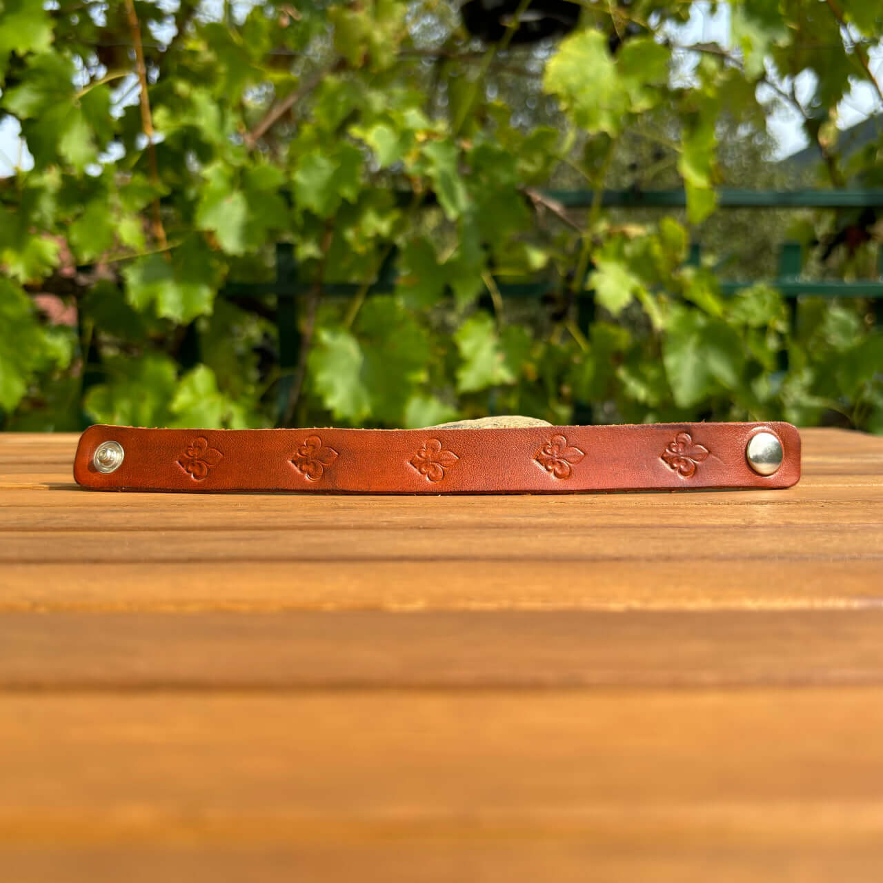 Zapestnica je izdelana iz prvovrstnega pravega usnja, ki zagotavlja trpežnost in udobje. Usnje s časom pridobi svojo edinstveno patino, kar prispeva k njenemu čaru in unikatnosti. Mehka, a robustna tekstura se lepo prilagodi vašemu zapestju in omogoča prijetno nošenje skozi ves dan.