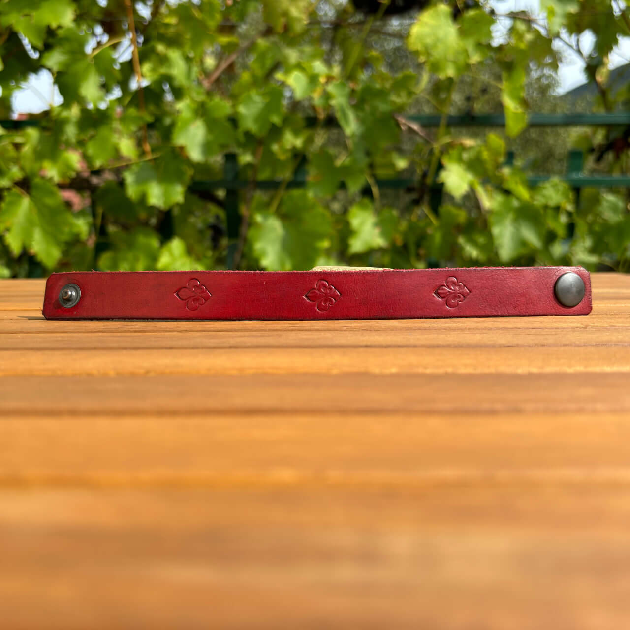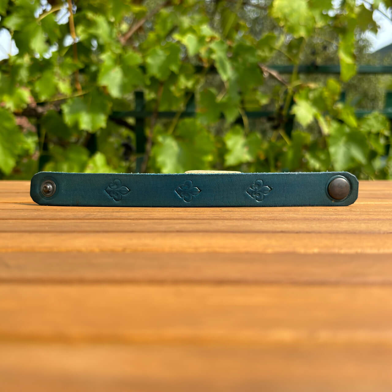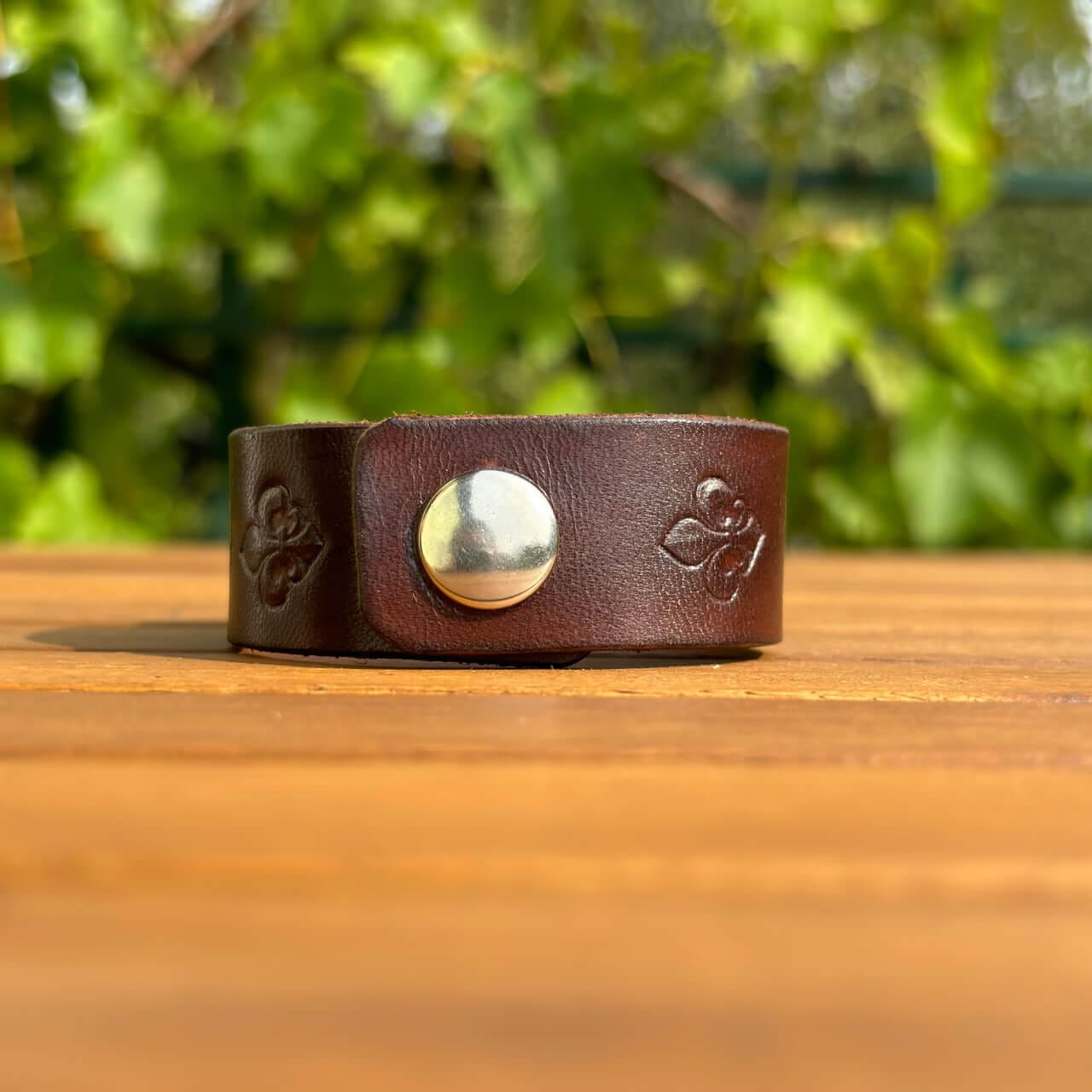 Zapestnica je izdelana iz prvovrstnega pravega usnja, ki zagotavlja trpežnost in udobje. Usnje s časom pridobi svojo edinstveno patino, kar prispeva k njenemu čaru in unikatnosti. Mehka, a robustna tekstura se lepo prilagodi vašemu zapestju in omogoča prijetno nošenje skozi ves dan.