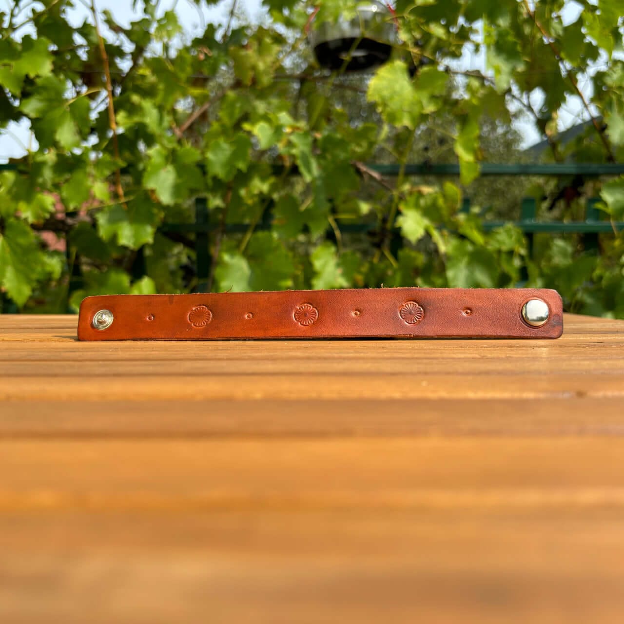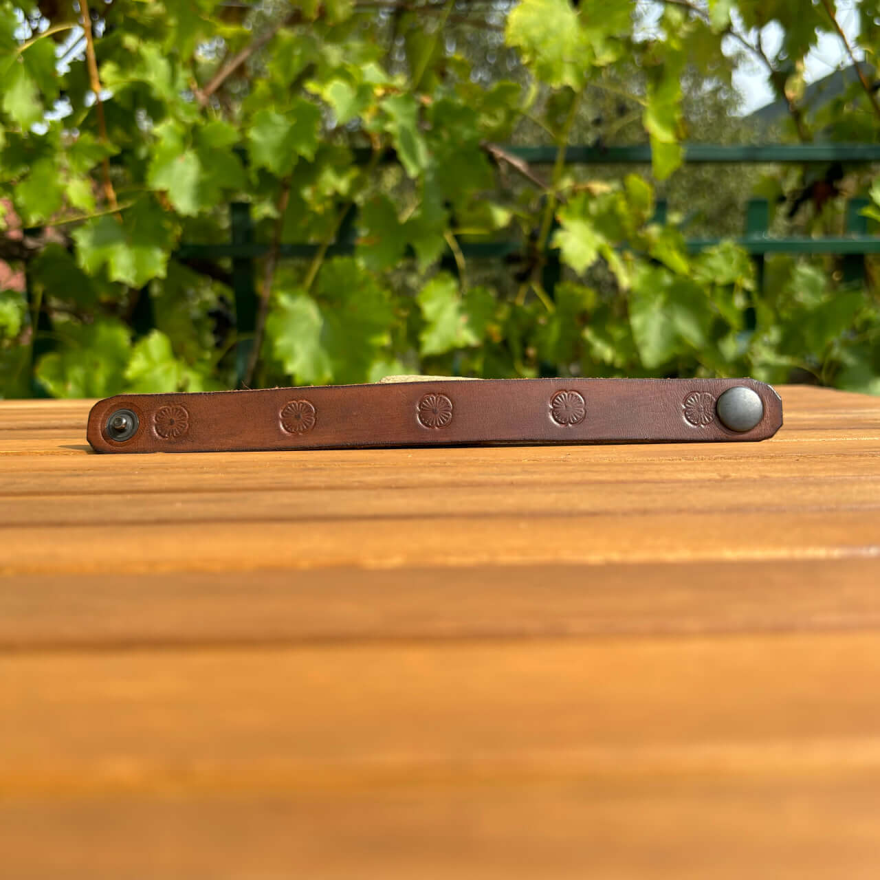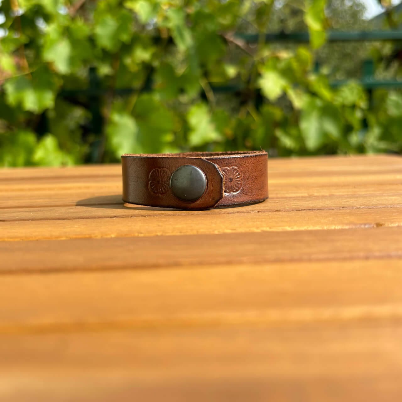 Zapestnica je izdelana iz prvovrstnega pravega usnja, ki zagotavlja trpežnost in udobje. Usnje s časom pridobi svojo edinstveno patino, kar prispeva k njenemu čaru in unikatnosti. Mehka, a robustna tekstura se lepo prilagodi vašemu zapestju in omogoča prijetno nošenje skozi ves dan.