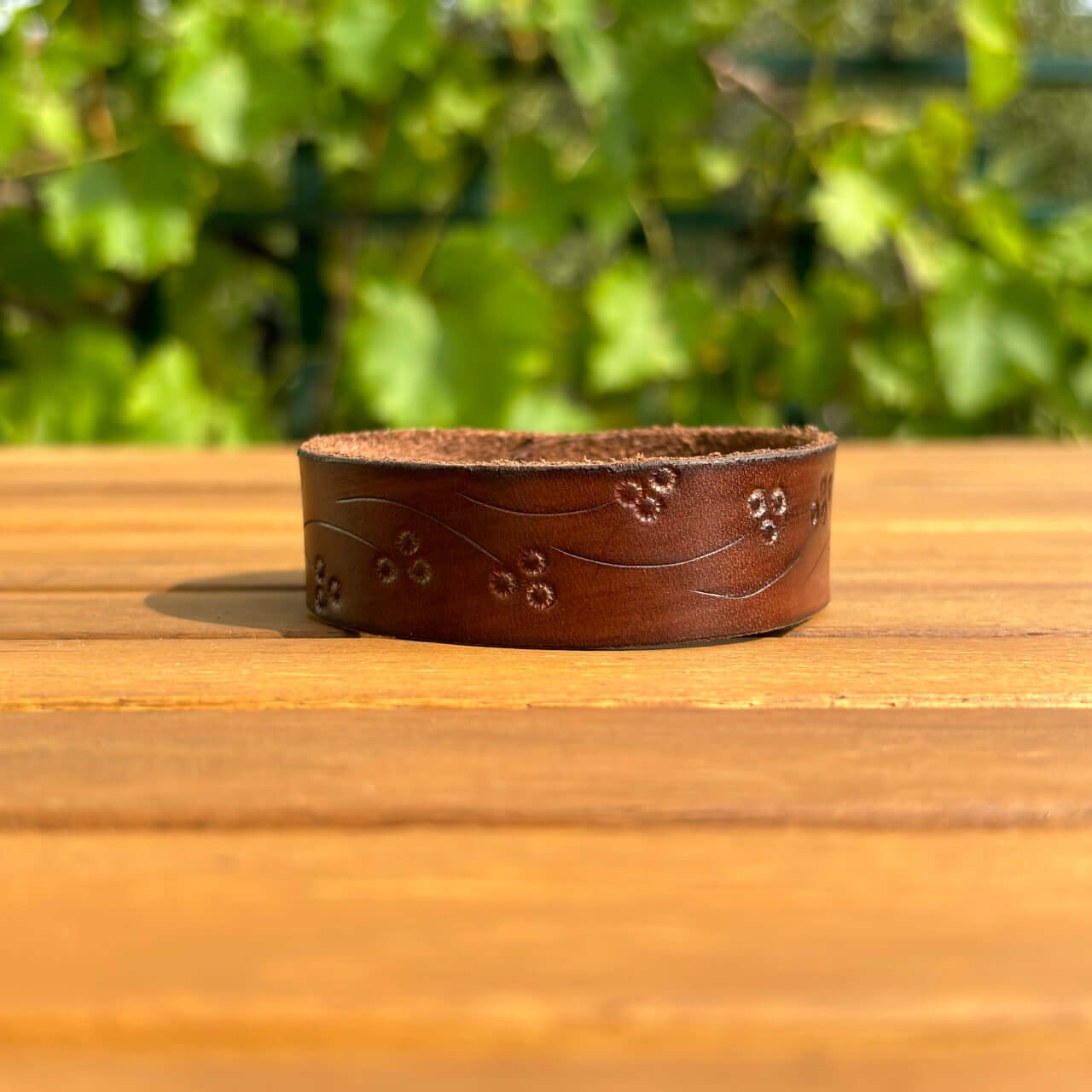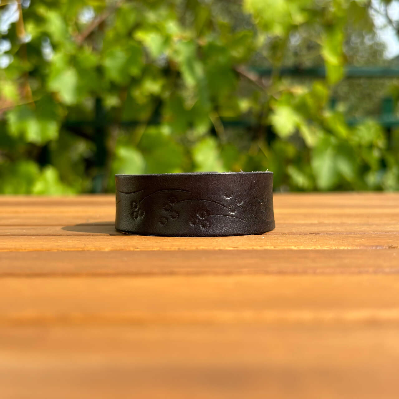 Ročno izdelana usnjena zapestnica z okrasom rožic.