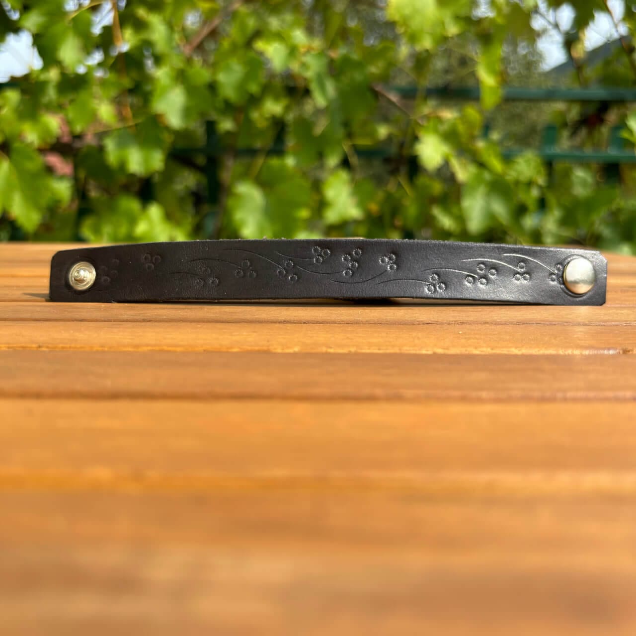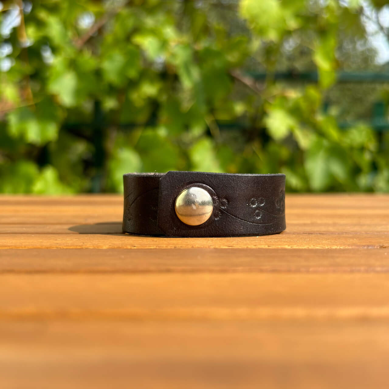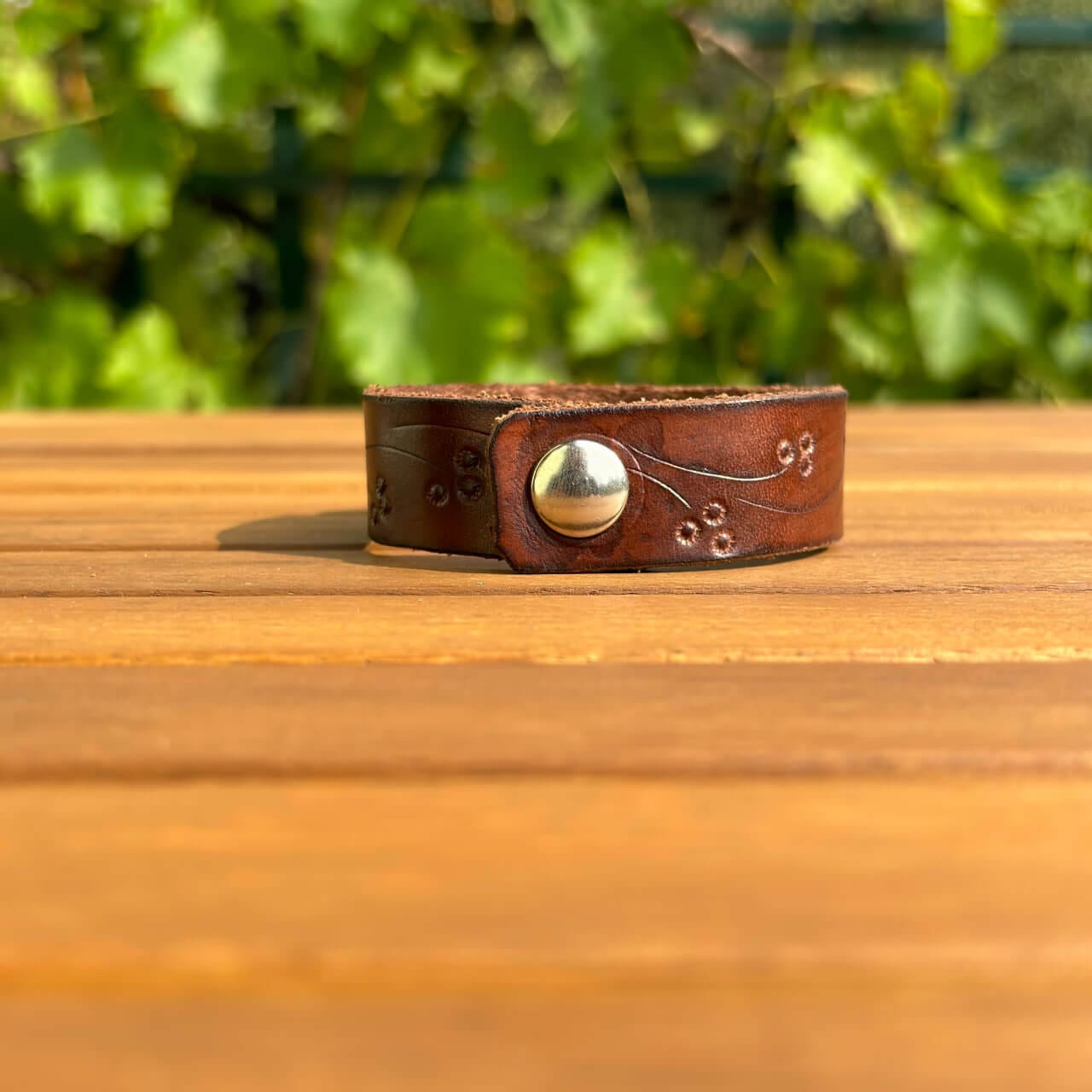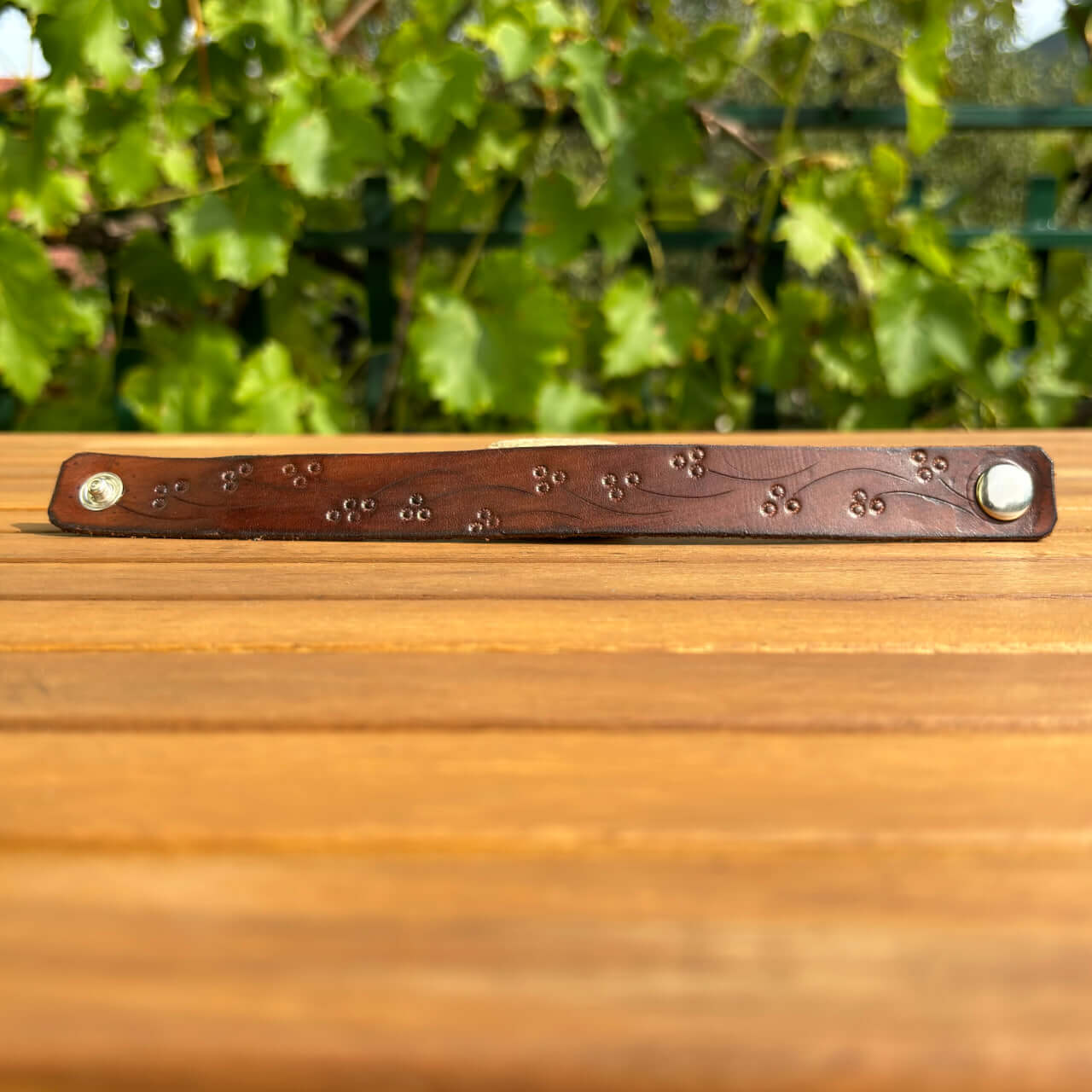 Zapestnica je izdelana iz prvovrstnega pravega usnja, ki zagotavlja trpežnost in udobje. Usnje s časom pridobi svojo edinstveno patino, kar prispeva k njenemu čaru in unikatnosti. Mehka, a robustna tekstura se lepo prilagodi vašemu zapestju in omogoča prijetno nošenje skozi ves dan.